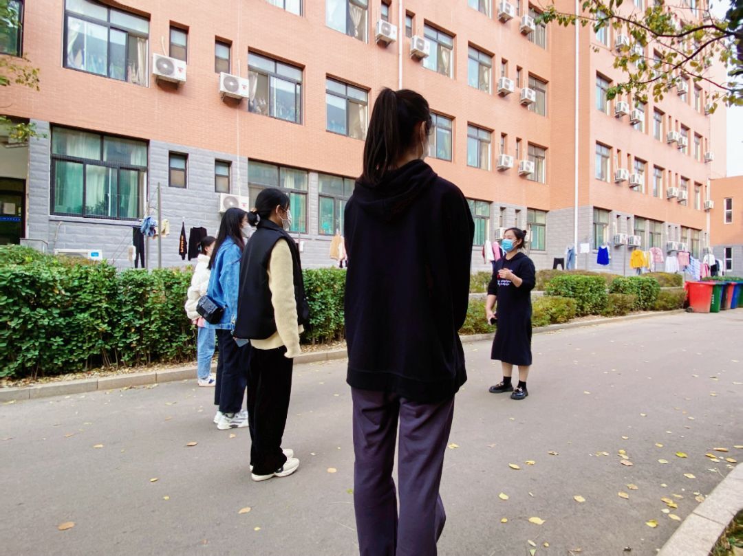 学生进公寓时进行体温测量,体温合格的同学按照指示路线进入公寓。