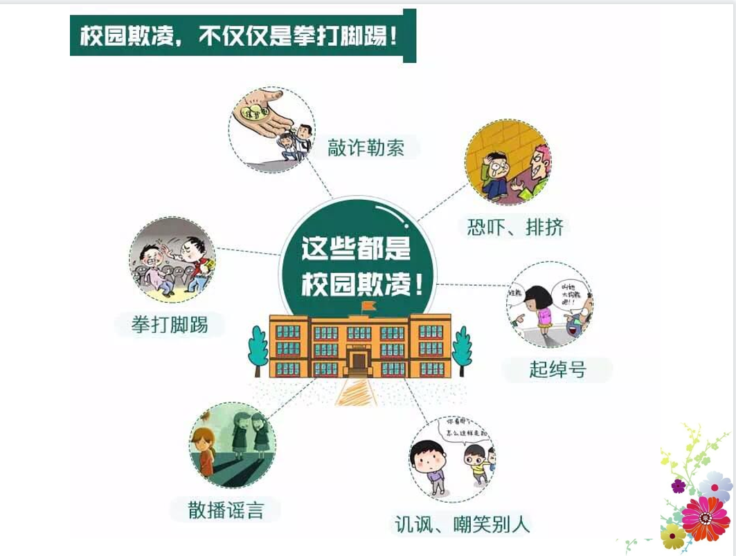 班会上,班主任老师对校园欺凌知识进行了普及,主要涵盖了五方面的内容:“校园欺凌”的表现形式及特点;容易参与“校园欺凌”的类型;“校园欺凌”的危害及影响;如何应对“校园欺凌”及如何走出“校园欺凌”的阴影。同学们对此有了基本的认知。