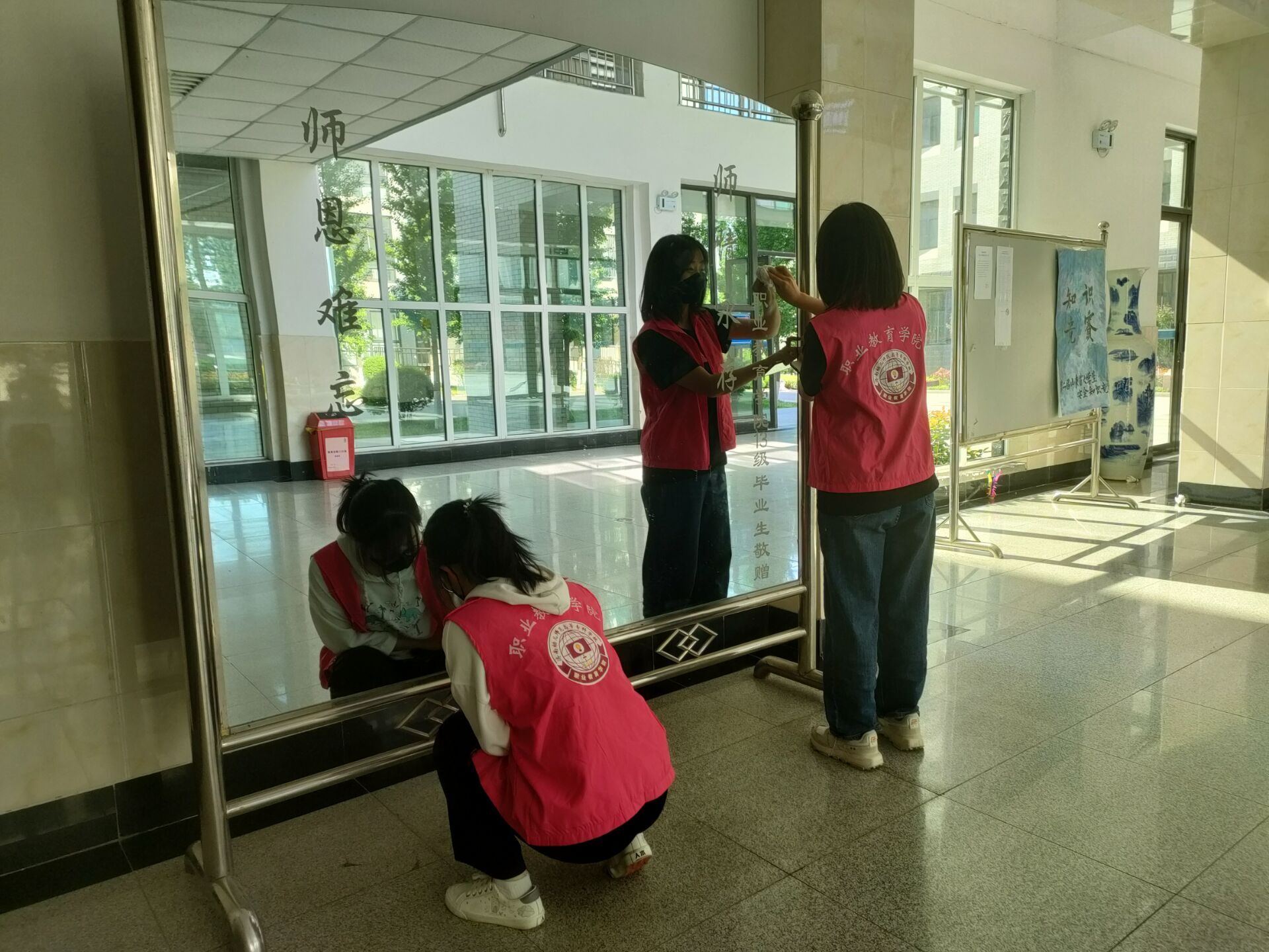 二十五名学生志愿者身穿粉色志愿服、手持扫把和夹子,分工合作、密切配合,对学校、办公楼、实验楼、食堂、锅炉房等场所进行了彻底清扫。他们将细汗挥发于春日的暖阳之中,将青春激情挥洒在”撸起袖子加油干”的号召里,用积极的态度、严谨的作风、灵动的方法描绘靓丽的校园蓝图,将校园文明推上一层楼。