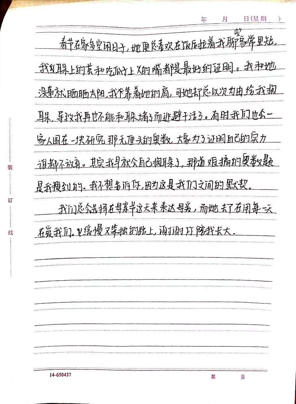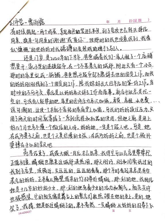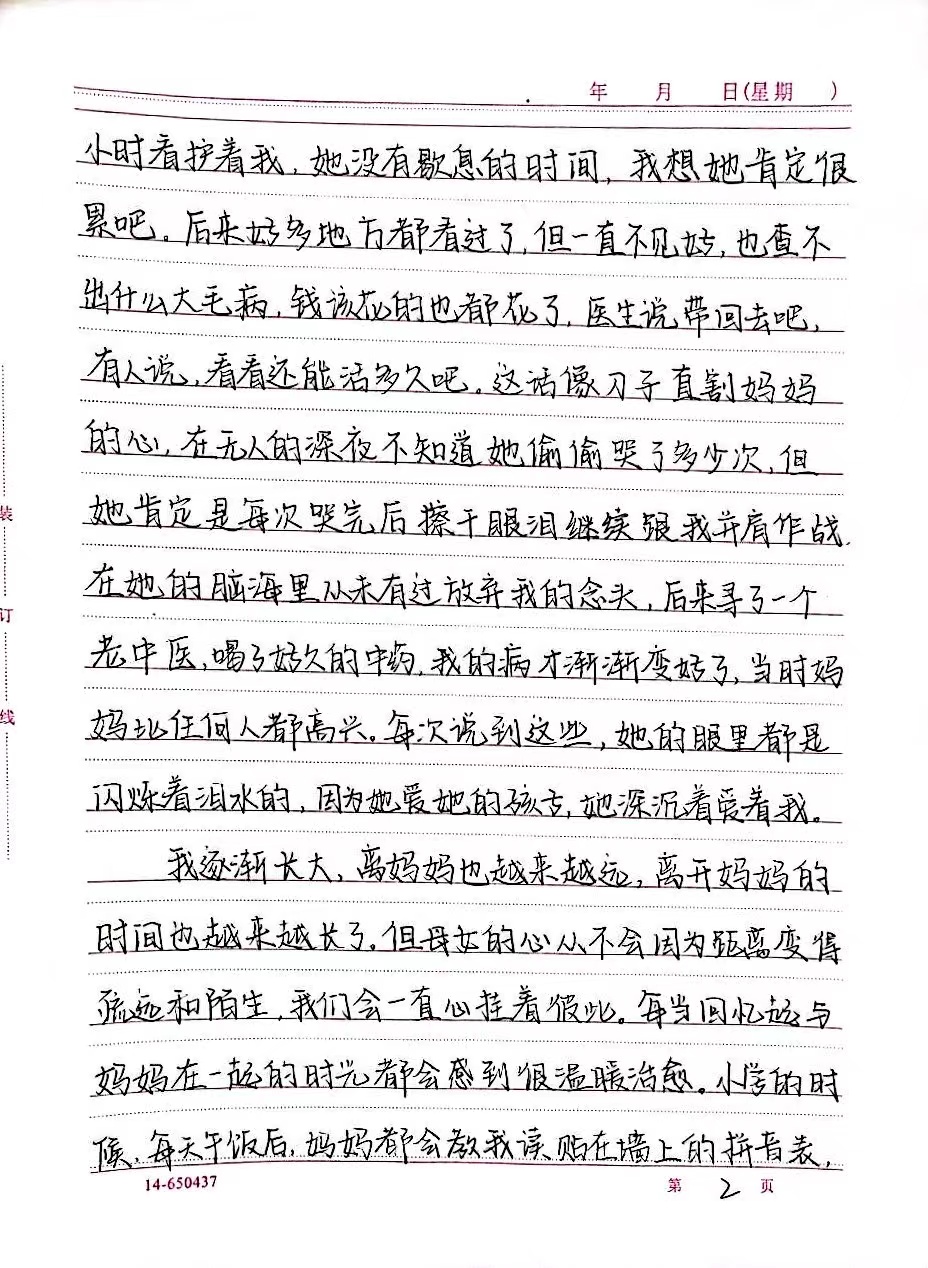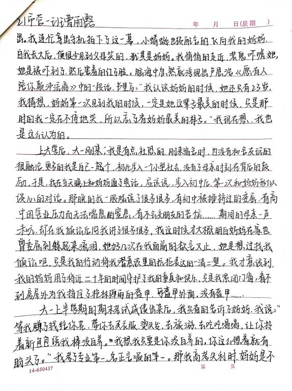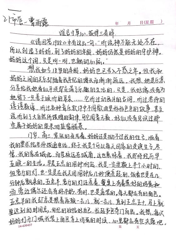 此次征文活动从5月1日开始,截至5月12日,同学们积极参加,把对母亲最难忘的回忆与最真挚的情感化作流淌在笔尖的文字,让爱在文字中流淌。本次活动评选出一等奖1名、二等奖2名、三等奖3名,一起来关注这份默默无闻的爱吧。