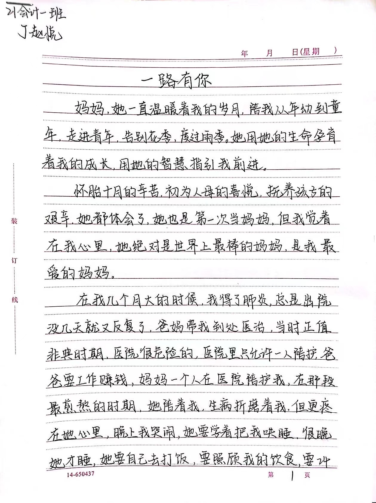 21会计一班 丁赵悦