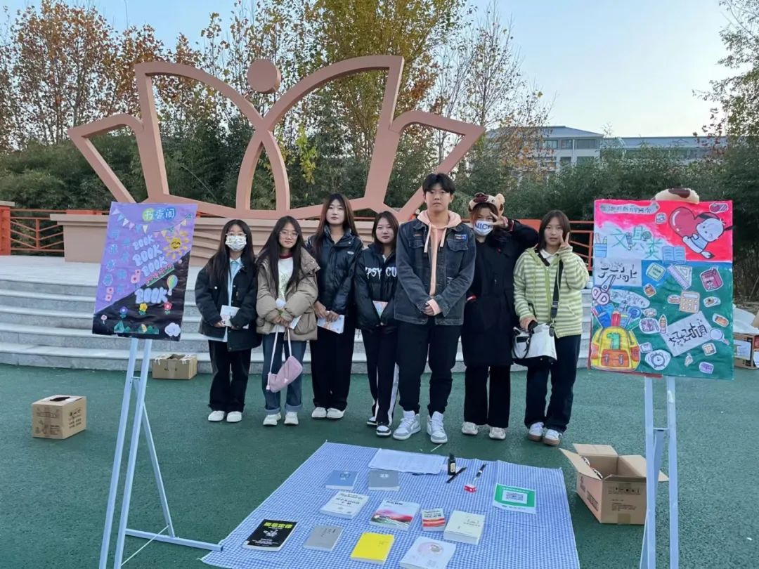 此次活动是22级举办的第一个大型活动,现场师生踊跃参与,热情高涨。同学们所售物品琳琅满目,书籍、礼品、饰品、玩偶等应有尽有。活动中,团总支的伙伴们面带微笑的去迎接每一位同学的到来,亮出敞亮的声音:“走过路过千万不要错过,机会难得”“此摊全部两元”......夕阳西下,落日余晖中,在向阳广场上留下了一道美丽的风景线。
