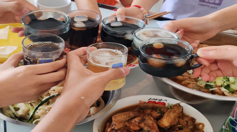 朋友们也是生活中不可少的一剂良药,是生命中不可或缺的阳光,他们在我迷茫时点亮方向,在我失落时给予慰藉,在我成功时分享喜悦,朋友是成长路上的同行者,心灵的港湾,中秋佳节当然要和朋友们相聚,一起吃好吃的,看好看的烟花,第一次相隔那么远,此刻,食物的香气、饮品的凉意、掌心的温度,都在诉说着团聚的珍贵——无论走多远,这份熟悉的味道和真诚的碰杯,总能把我们拉回最初的起点。